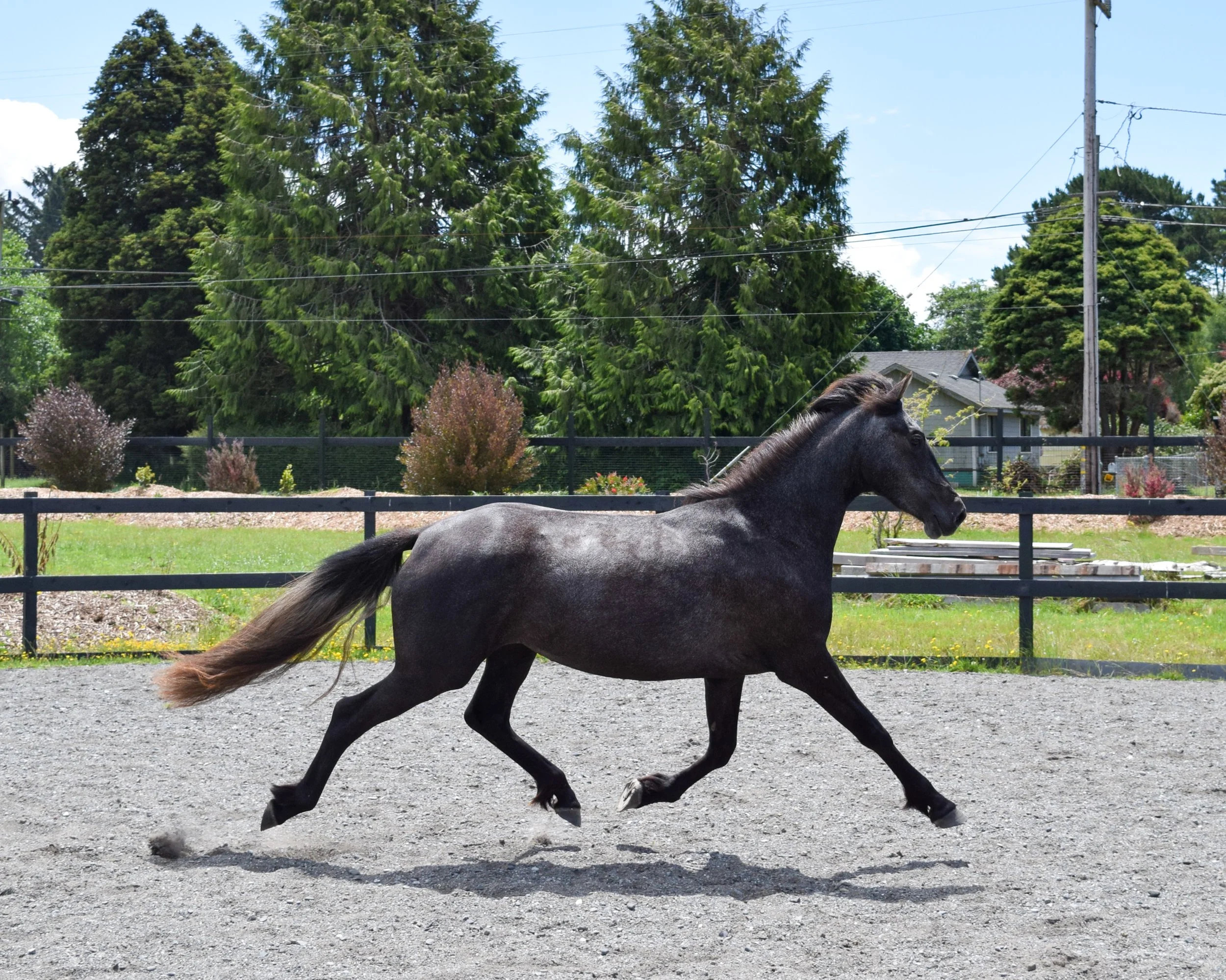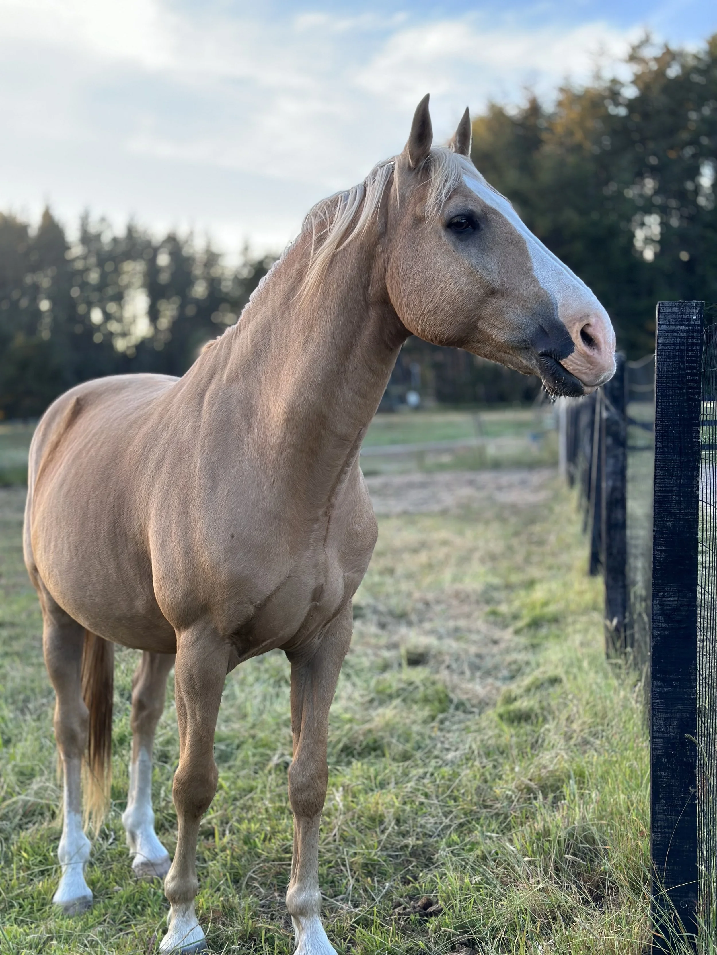 April lived on the raw land we built our ranch sanctuary on, and when we purchased the property, her previous caretakers didn't want to take her with them. This tiny little ray of sunshine joined our herds, thrived in learning how to be handled, participated in liberty and trick training, and eventually was placed with an Equine Therapy Program where she assists in Equine Facilitated Healing and Therapy.