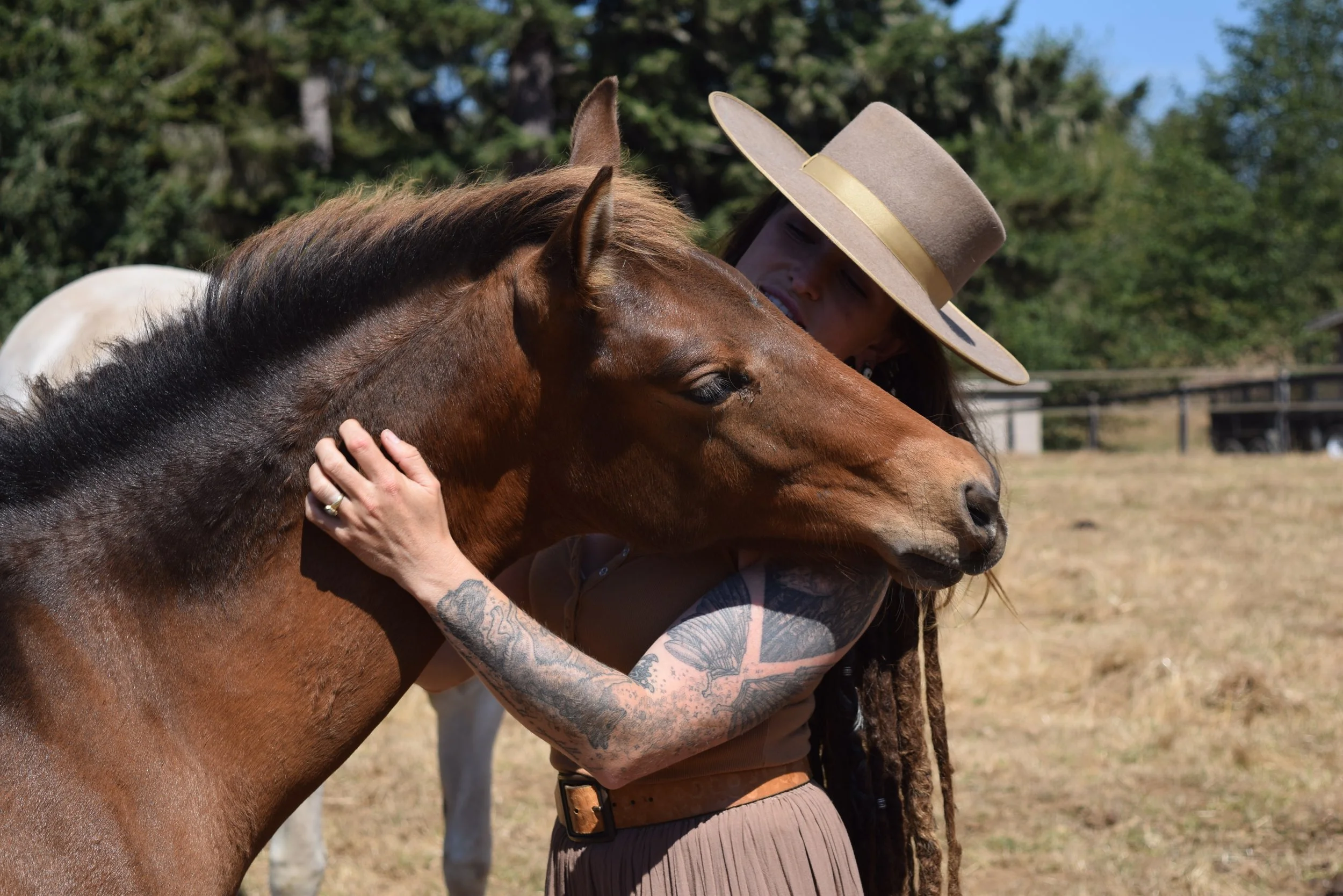 It all began with Misa, our first rescue horse, whose incredible journey of healing and growth inspired us to help more horses like her. She has overcome immense trauma to become a beacon of hope and healing for so many. A permanent fixture of the sanctuary and beloved partner of our founder Tara, Misa is truly the heart of Unbridled Sanctuary.